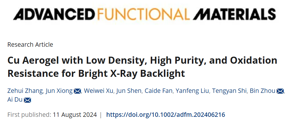 8b角球比分 杜艾/周斌团队在高纯单质铜气凝胶设计与背光源应用方面取得重要进展,研究成果发表于《先进功能材料》