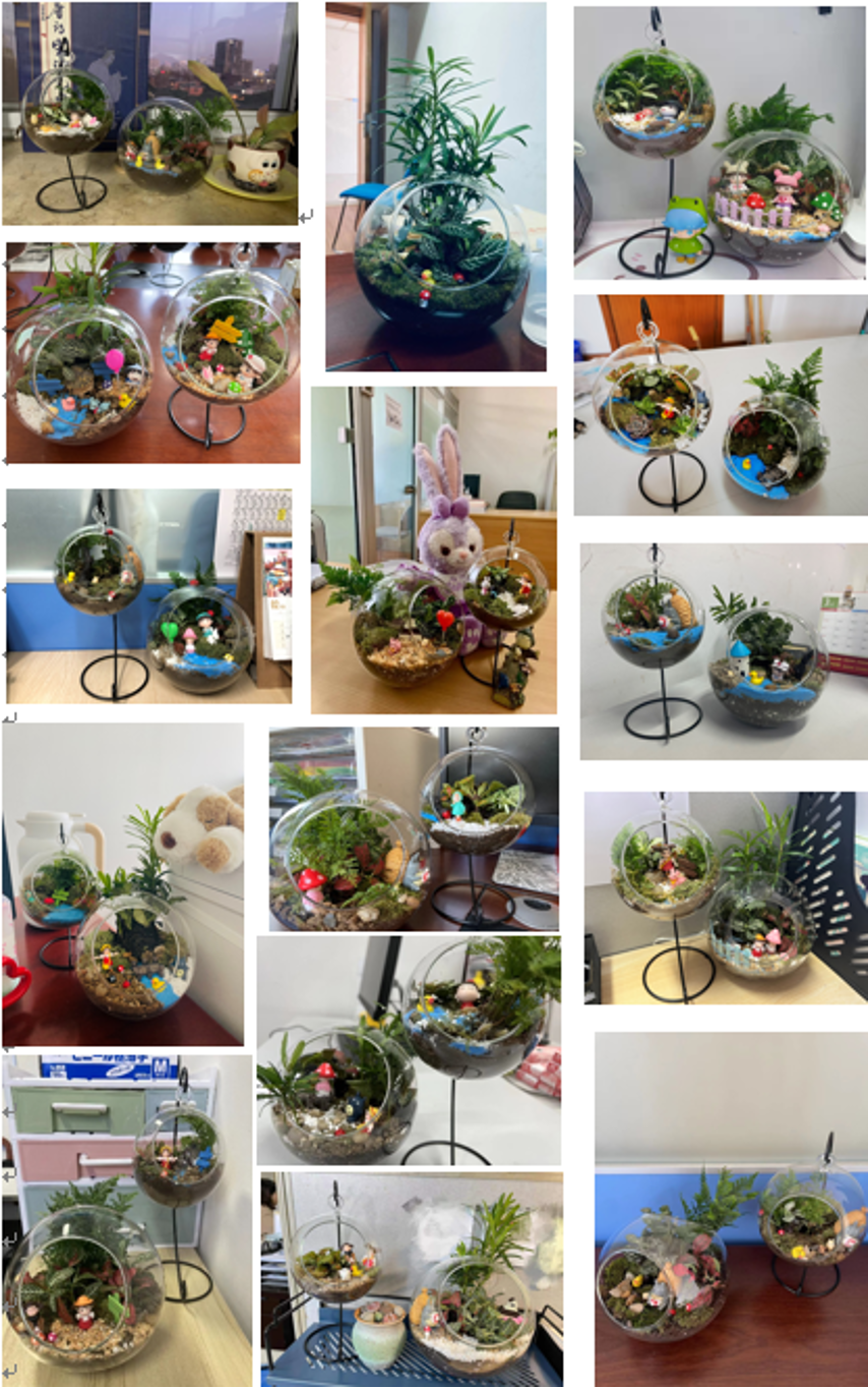 活动结束以后,女教师们将植物景观摆放在办公室,不但点缀美化了办公环境,工作之余也能感受大自然的宁静,缓解压力放松心情的同时,带来很多天美好的心情。
