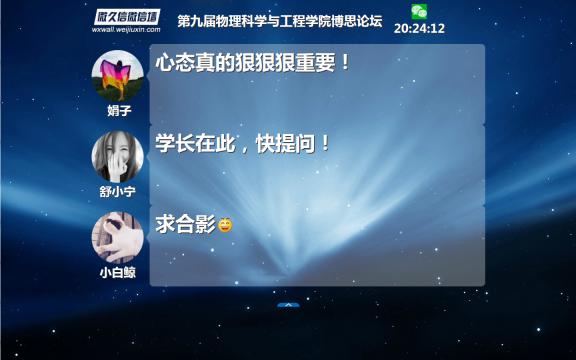 第九届8b角球比分 博思论坛于11月19日晚18:30在物理馆212室隆重举行,邀请的嘉宾有老师杜艾、博士生朱智超、硕士生武英杰、本科生冯禹。