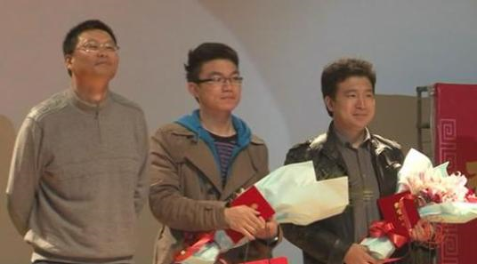 校长助理吴广明老师和校团委书记杨元飞老师为获奖者颁奖