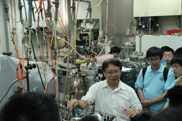 在下午的学术交流中,台湾大学的梁启德、王立民、林俊达和傅昭铭四位教授做了四个主题报告,分别介绍了各自研究领域的最新进展,特别是关于超导和纳米材料方面的科研成果让人印象深刻。对于超导我们自然不会陌生,自1911年荷兰科学家卡•翁纳斯等人发现超导状态以来,超导材料受到许多物理学家的关注,超导物理得到了迅猛发展。目前,如何使“高温超导”的临界温度继续提高,成为这个课题的重要研究方向之一。此外,我们亲眼目睹了纳米材料神奇的变色现象,随着金纳米颗粒直径的减小,原来的金黄色变红变绿又变成黑色;磁性纳米颗粒的特性——能够解释许多生物长距离定向迁徙的原因,以及用于生物医学领域的巨大前景。最后,我们又相继参观了多个实验室,了解了多种类型镀膜机和扫描隧道显微镜的工作原理,并兴致盎然的参与到高温超导演示实验等。