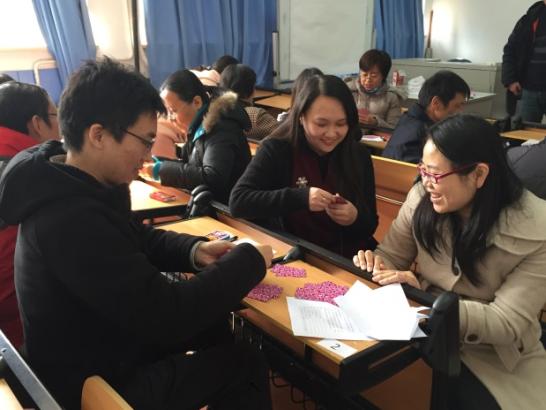 教师们正聚精会神地比赛,或站着,或坐着,被复活的选手难掩心中的喜悦