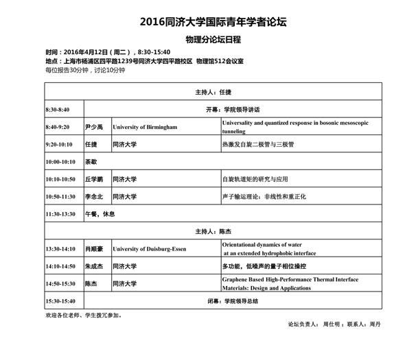 [04月12日]2016同济大学国际青年学者论坛物理分论坛日程