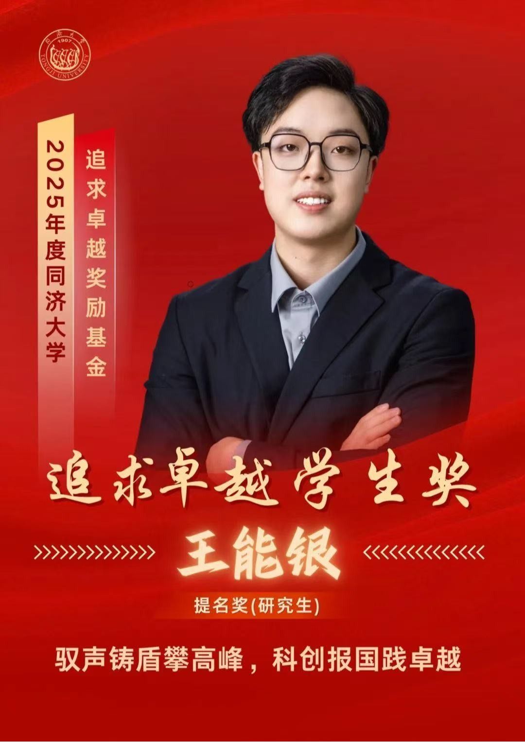 喜报丨同济最高奖!热烈祝贺8b角球比分 博士研究生王能银获卓越奖提名